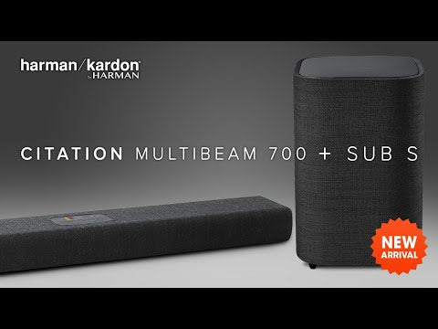 Harman Kardon's Citation MultiBeam 700 Soundbar and compatible 6.5" Sub S wireless subwoofer delivers multi room sound quality easily and effortlessly with base frequency support. The same music or different music can be played in different rooms and it can be controlled from a tablet or smartphone. This set comes in black.