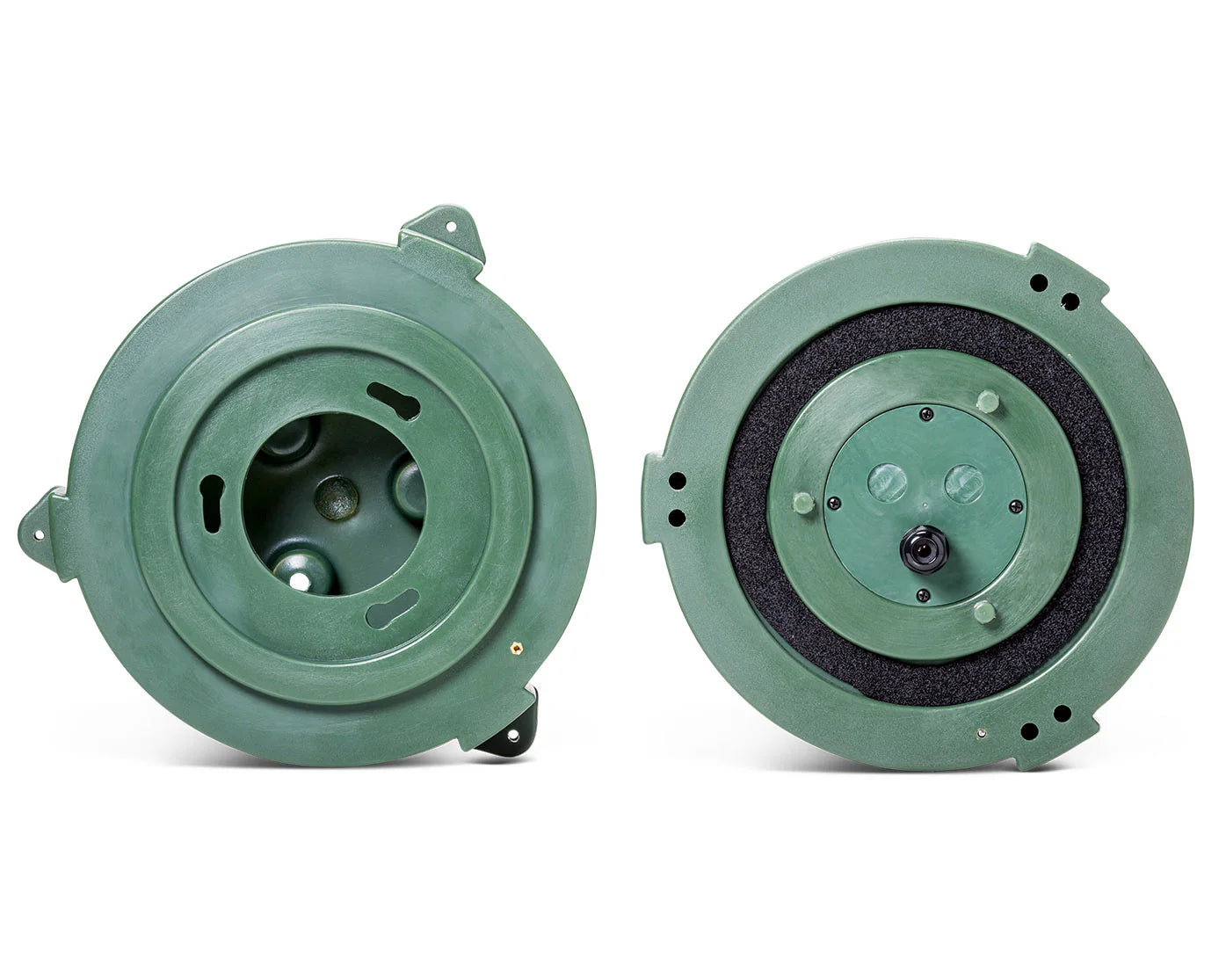 Compact in design, the speaker is unobtrusive and easily blends in with its surroundings. A tough polyethylene enclosure resists abuse from lawn care equipment and the elements, and the enclosure color extends throughout the material so the speaker will maintain color even when scraped or scratched.