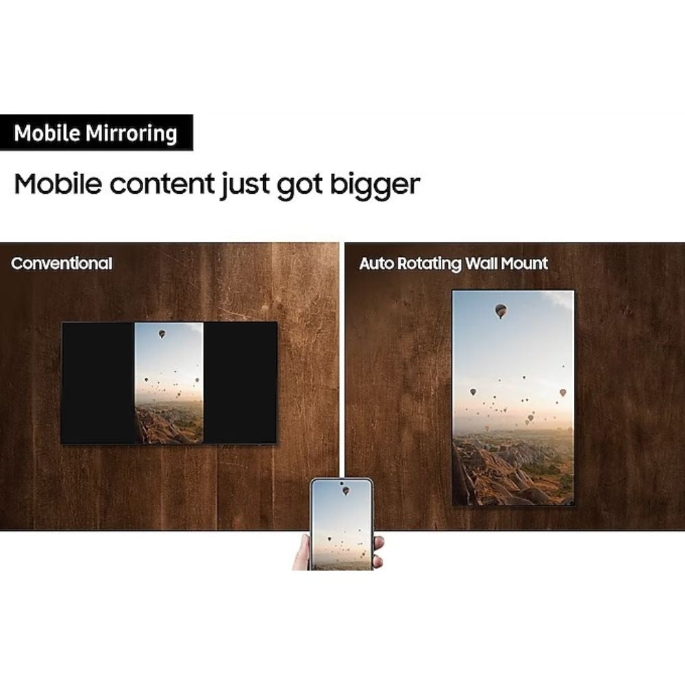 The orientation of the TV screen can be changed simply by installing the Samsung TV on this wall mount and pressing and holding the Multi View button for a few seconds on the remote control. Your TV will become an art posters or the video content of your favourite stars may be displayed on a bigger and clearer screen in Portrait mode, through smartphone mirroring.
