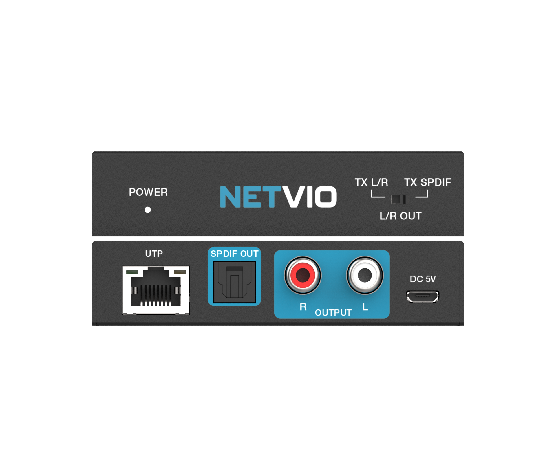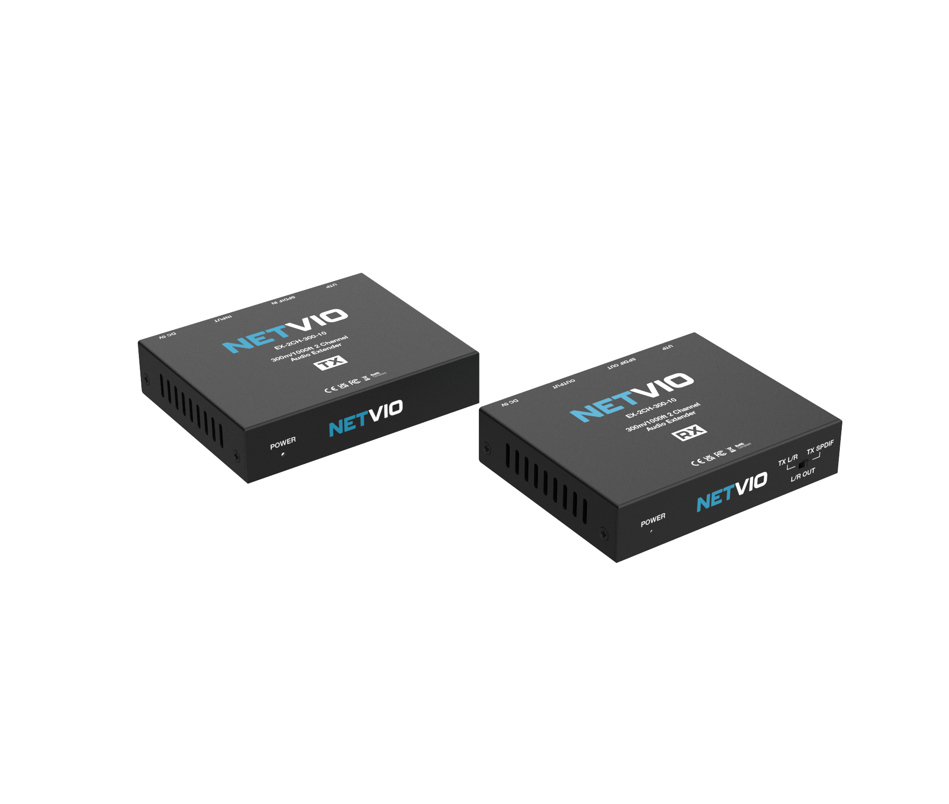 The Netvio EX-2CH-300-10 is a premium 2-channel audio extender designed for high-end residential and commercial installations. Using a single CAT6 cable, it transmits both optical (SPDIF) and analogue stereo audio signals up to 300 metres with zero loss in quality.