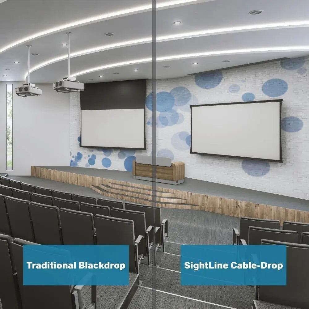 You can drop the projection screen to the height you need while preserving the look of the room when unrolled, the way the architect intended. The SightLine unique cable drop system makes this screen the perfect solution for any room with great architecture or high ceilings.