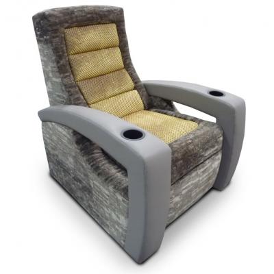 Upholstered in your choice of premium leather or Ultraposh suede, this seat combines timeless design with modern technology. Featuring stainless steel cupholders, USB-integrated control buttons, and a smooth motorised reclining mechanism, it’s built to deliver an unmatched cinematic experience.